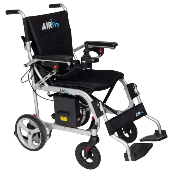 The Air Pro powered chair is a lightweight wheelchair that can be used with or without battery, this chair has a user weight limit of 18 stone, with a top speed of 4mph and a range of 6 miles. Foldable for convenience, air, coach and cruise friendly.